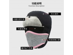 這款可拆卸口罩保暖雷鋒帽,帶覆膜防水面料不懼雨雪天氣,細密去靜電內(nèi)絨,加倍呵護保暖。內(nèi)層保暖外層防水擋風(fēng),內(nèi)層柔軟搖粒絨舒適保暖,外層防水防風(fēng)隔離冷空氣。防水透濕透氣絕緣防風(fēng)保暖。同色系魔術(shù)貼,粘合簡單方便,粘性強,防潑水面料雨雪天氣都適用。里采用珊瑚絨面料,質(zhì)地細膩,手感柔軟,不易掉毛,起球??谡衷诓皇褂脮r可放入右側(cè)收納袋,方便實用不易丟失。后置隱藏式松緊帶,隨頭圍大小自由變化。采用雙層純棉面料,有效阻隔霧霾,保暖性佳戶外徒步:防水口罩雷鋒帽在寒冷的冬季為您的戶外徒步旅途中保駕護航,不受風(fēng)雪侵擾。騎車出行:寒冷天氣騎車出行,只戴頭盔依然冷風(fēng)刺骨。加上一頂雷鋒帽保暖頭部臉部肌膚溫暖出行。團隊出行:適合冬季旅游 出行驢友團隊,騎行等戶外活動,滿足冬季戶外保暖需求。